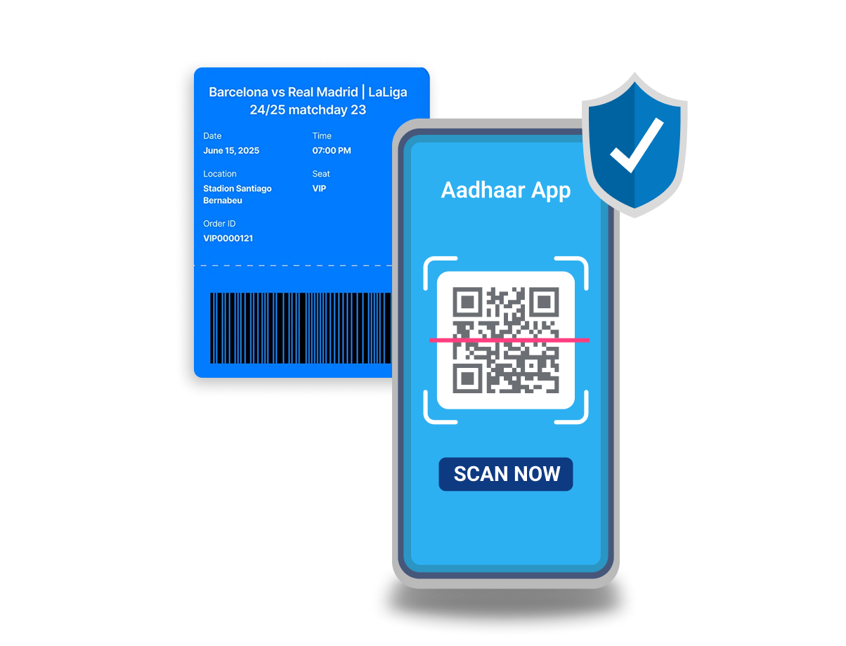Aadhaar-Based Ticket helps organizers verify ticket holders’ identity using QR-based offline eKYC via the Aadhaar App. It offers Consent-based data sharing, Privacy Protection, and Fraud Prevention.